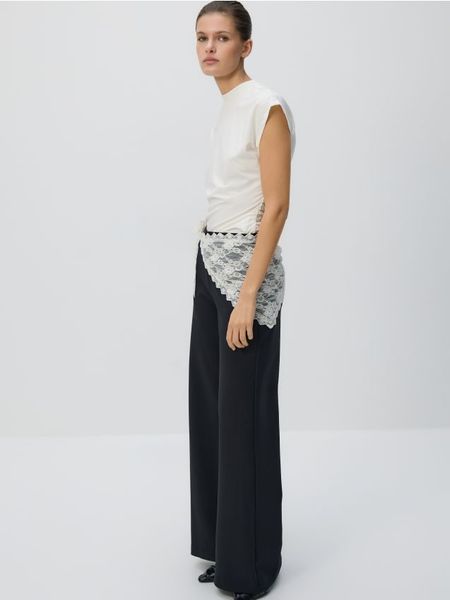 Spodnie o luźnym kroju, wykonane z tkaniny.