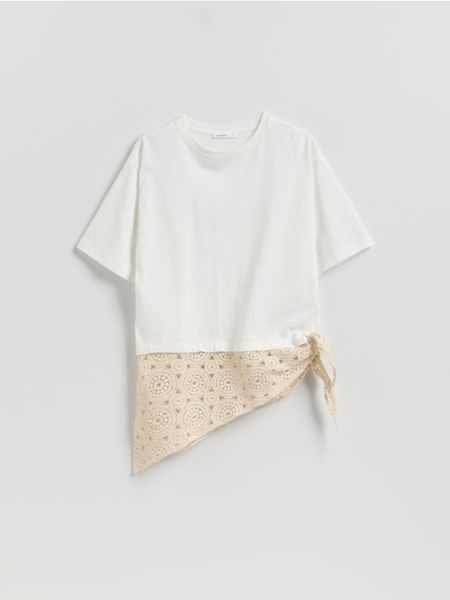 T-shirt z ażurową chustą – biały
