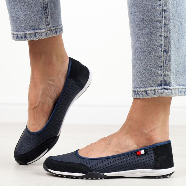 Granatowe ażurowe skórzane baleriny damskie T.Sokolski 600