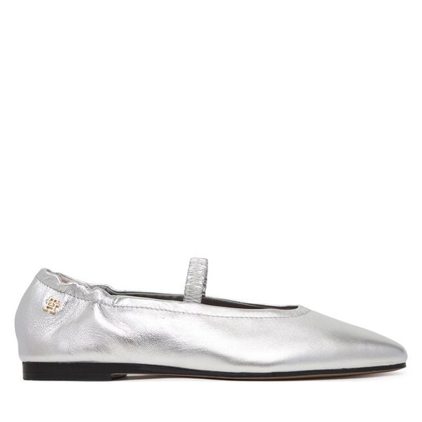 Baleriny Tommy Hilfiger Silver Lth Ellastic Ballerina FW0FW09466 Srebrny