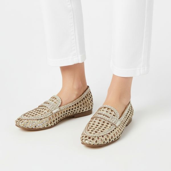 Baleriny damskie Gioseppo, płaski obcas wsuwany fason klasyczny mokasyn zamknięty nosek pleciona cholewka ażurowa struktura lekka konstrukcja, srebrn