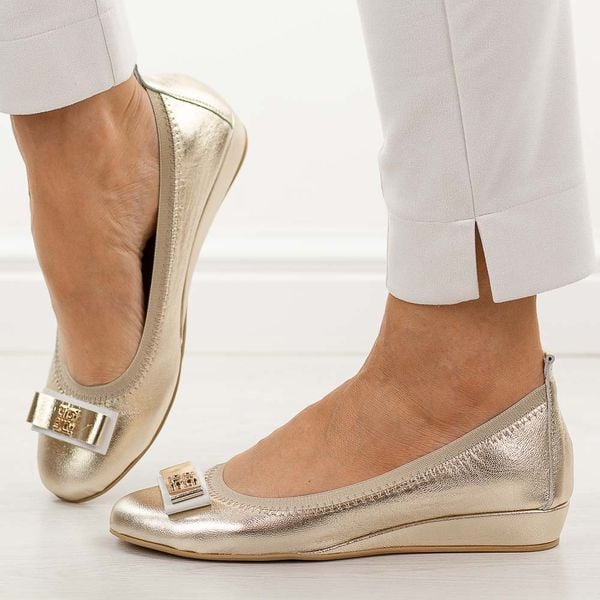 Złote skórzane Polskie baleriny damskie Prestige 2236