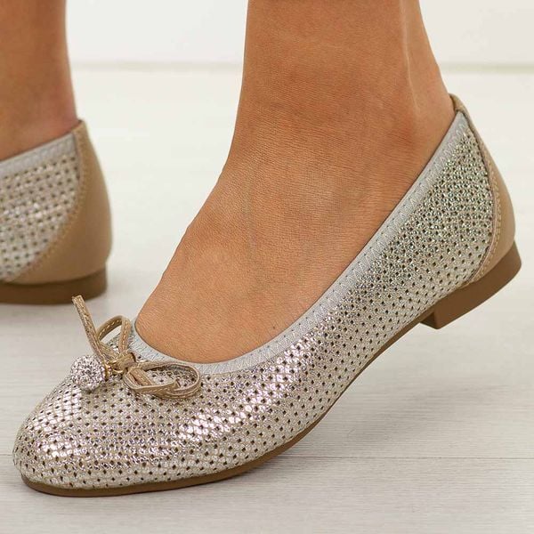 Złote skórzane baleriny damskie T.Sokolski W26-225