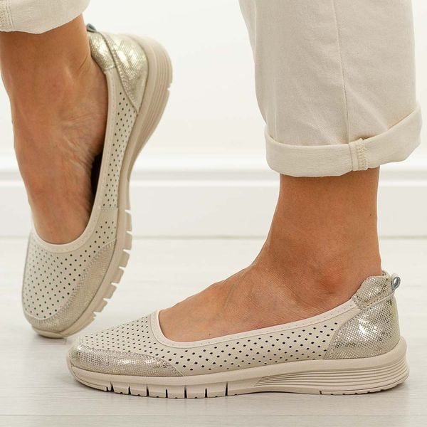 Beżowe ażurowe skórzane baleriny damskie Vinceza 95369