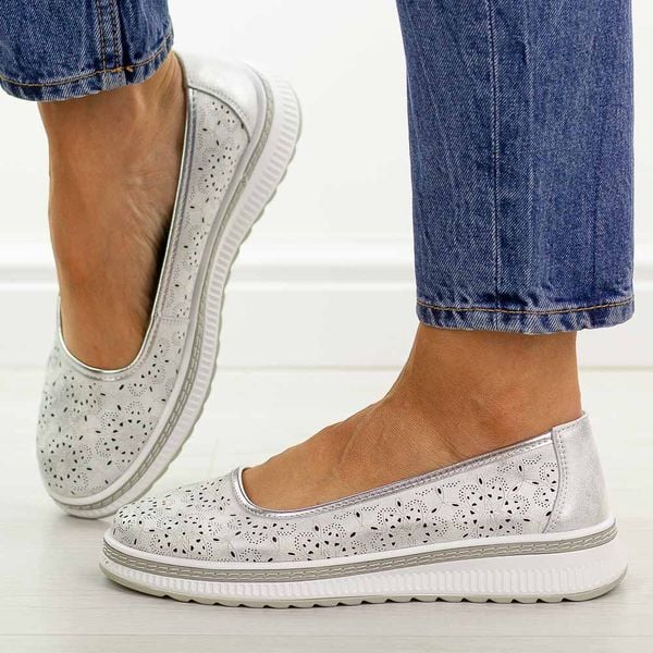 Srebrne ażurowe skórzane baleriny damskie S.Barski 7038