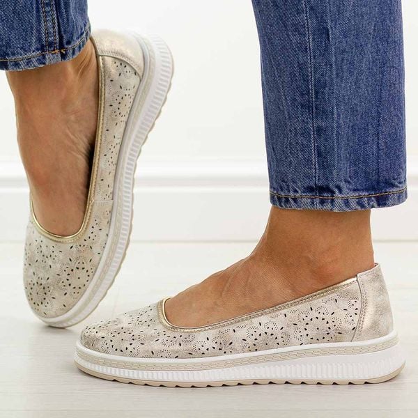 Złote ażurowe skórzane baleriny damskie S.Barski 7038