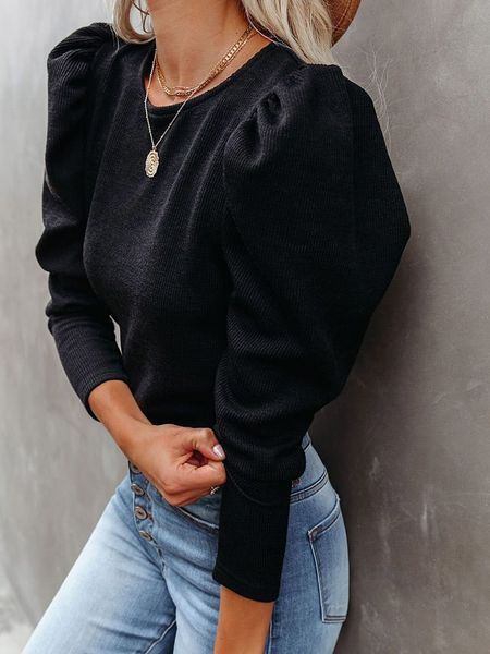 – dekolt: okrągły- krój rękawów: bufiasty- krój: prosty- look: jednokolorowy