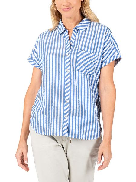 – kołnierz: kent- zapięcie: listwa guzikowa- kieszenie: na piersi- krój: prosty- wzór: paski