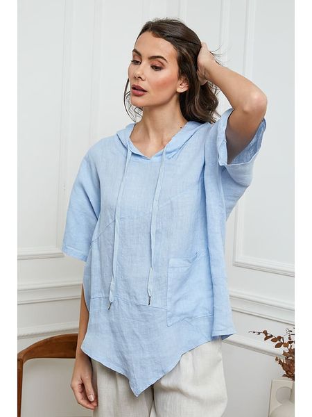 – czysty len- kaptur: ze ściągaczem tunelowym- dekolt: V- długość rękawa: półdługi- krój: prosty- look: jednokolorowy