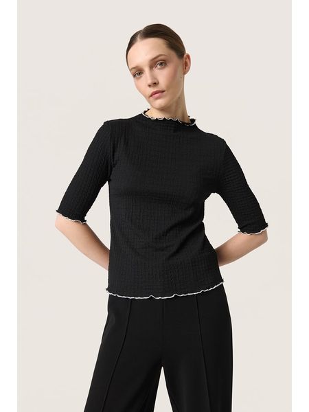 – kołnierz: stójka- zakończenie rękawów: marszczenie- dolny brzeg: marszczony- krój: prosty- look: jednokolorowy