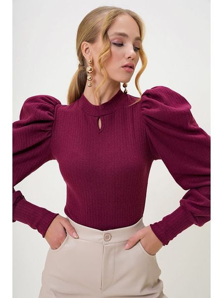 – dekolt: łezka- krój rękawów: bufiasty- krój: wąski- look: jednokolorowy