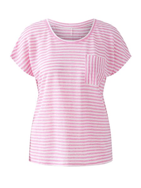 Oui Lniana koszulka w kolorze jasnoróżowo-białym rozmiar: 38