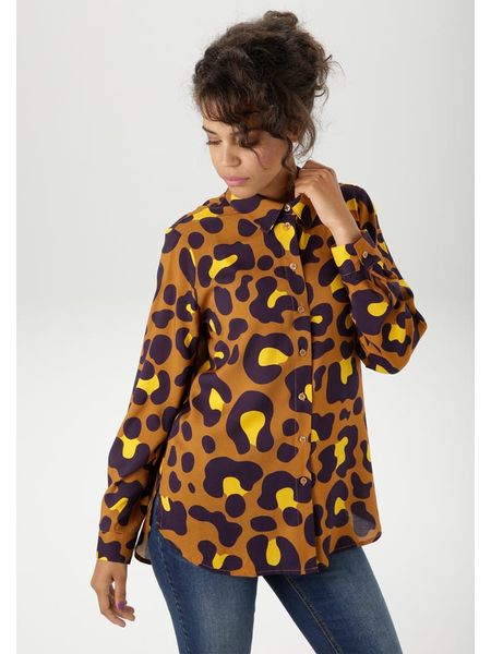 – czysta wiskoza- kołnierz: kent- zapięcie: listwa guzikowa- zakończenie rękawów: guzik- dolny brzeg: zaokrąglony- krój: luźny- wzór: panterka