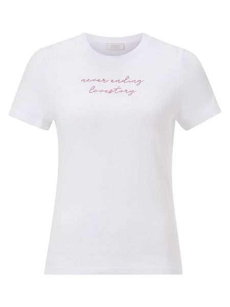 – dekolt: okrągły- krój: wąski- nadruk: w formie napisu- look: jednokolorowy