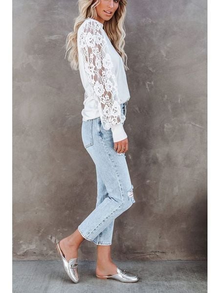 – dekolt: okrągły- rękaw: bufiasty- ściągacz: dekolt, zakończenia rękawów, dolny brzeg- detale: koronka- krój: prosty- look: jednokolorowyUwaga: Przy wyborze właściwego wariantu zaleca się korzystanie z tabeli rozmiarów.