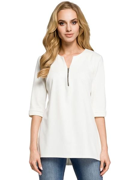 – dekolt: z rozcięciem- zapięcie: suwak- długość rękawa: półdługi- krój: luźny- look: jednokolorowy