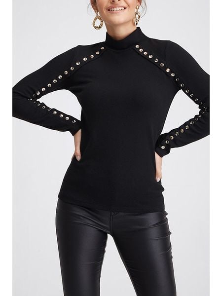 – kołnierz: golf- krój: wąski- detale: ozdobny guzik- look: jednokolorowy