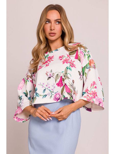 – dekolt: okrągły- długość rękawa: 3/4- krój: oversized- wzór: kwiatowy