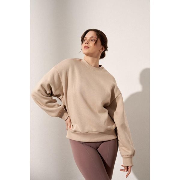Bluza do jogi Moonholi Just Perfect oversize z bawełnianej dzianiny Ocena: Tags: Sporty Fitness, siłownia Odzież i buty fitness Bluzy fitness Kolor: Beżowy Rozmiar: 38 S Przeznaczenie: female Marka: MOONHOLI
