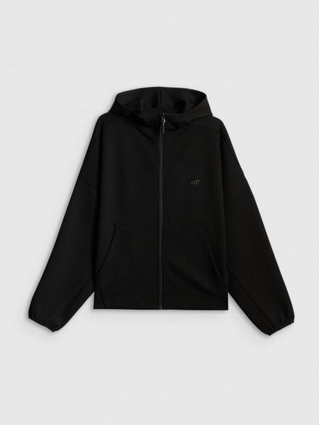 4F Bluza dresowa regular z kapturem damska – czarna XS
