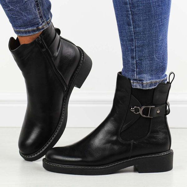 Czarne płaskie botki damskie M.Daszyński sa252-7