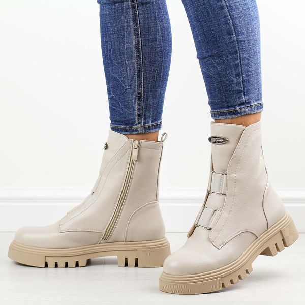 Beżowe botki damskie na traperze Jezzi 2150-19