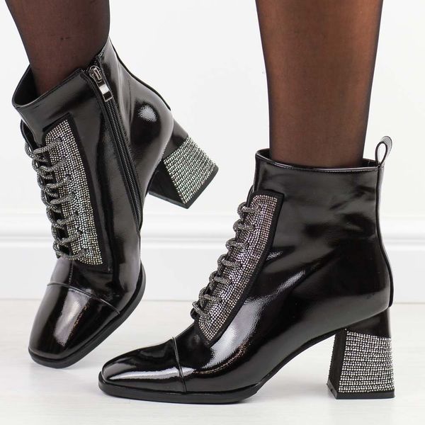 Czarne lakierowane botki damskie na słupku DiA 880-022