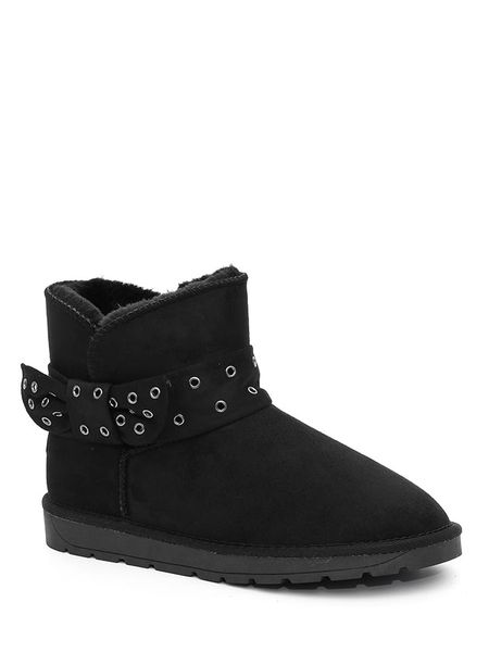 – wodoodporny materiał wierzchni o wyglądzie skóry welurowej („Microsuede”)- zapięcie: bez- noski: zaokrąglone- zapiętki: wzmocnione- detale: ozdobna kokarda- wyściółka: ogrzewający materiał tekstylny- podeszwa: lekko profilowana- kolor producenta: Black