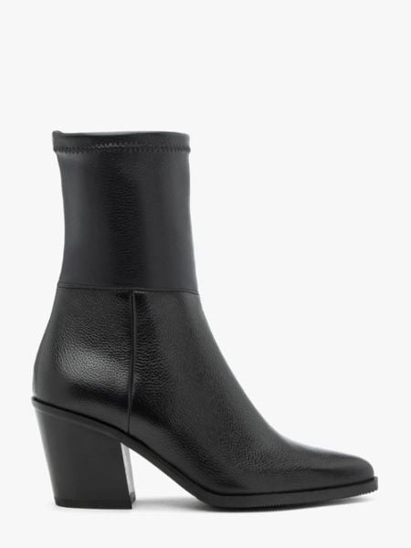 Czarne botki damskie wykonane z połączenia skóry licowej i materiału syntetycznego. Nieocieplane, z wygodną skórzaną wyściółką i podszewką. Stabilny obcas słupek o wysokości 7,5 cm i nosek w szpic optycznie wysmuklają nogę. Model z linii Ryłko, wyposażony w technologię R.SILENCE, tłumiącą drgania i hałas. Zamek na całą długość cholewki. Modna długość za kostkę, sięgająca łydki.Dystrybutor: […]