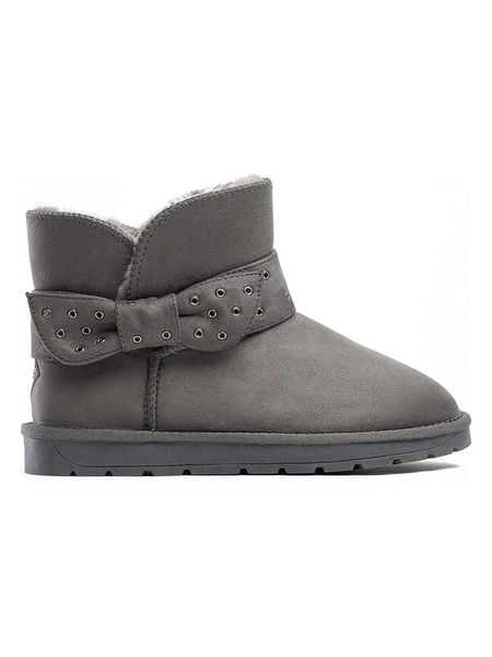 – wodoodporny materiał wierzchni o wyglądzie skóry welurowej („Microsuede”)- zapięcie: bez- noski: zaokrąglone- detale: ozdobne i formujące szwy, ozdobna kokarda- zapiętki: wzmocnione- wyściółka: ciepła- podeszwa: antypoślizgowa- kolor producenta: charcoal