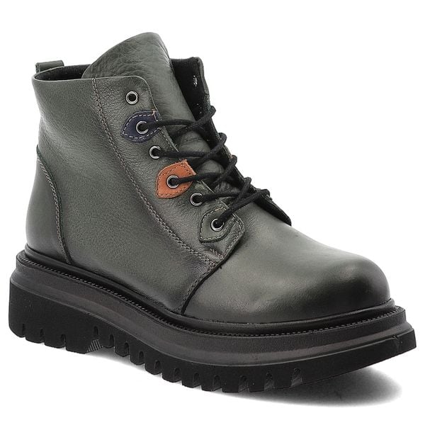 Botki damskie Artiker, za kostkę skórzane na płaskim obcasie z okrągłym noskiem i na zamek, zielone, 57C2194