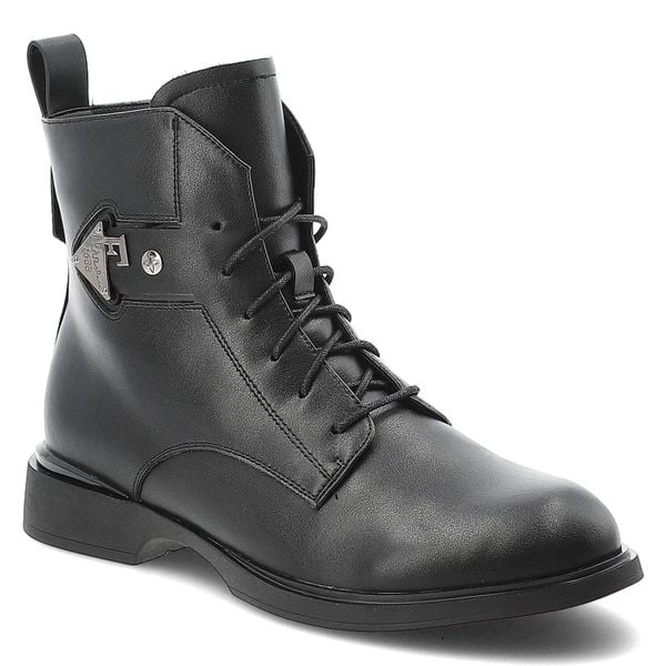 Trzewiki damskie Maciejka, ze skóry licowej na płaskim obcasie z okrągłym noskiem i na płaskim obcasie, czarne, K3115-01-00-8