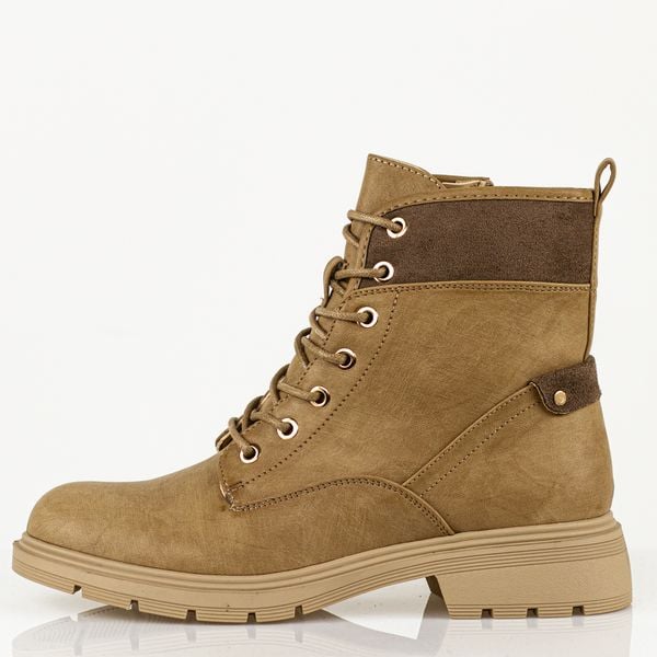 Beżowe botki damskieModne botki damskie na płaskiej podeszwie wykonane z wysokiej jakości eko skóry to idealny wybór na chłodniejsze dni. Model jest sznurowany i zasuwany na suwak, co zapewnia idealne dopasowanie do stopy oraz wygodne zakładanie. Buty są ocieplane, dzięki czemu świetnie sprawdzą się jesienią i zimą. Okrągły nosek gwarantuje komfort noszenia przez cały dzień. Botki doskonale […]