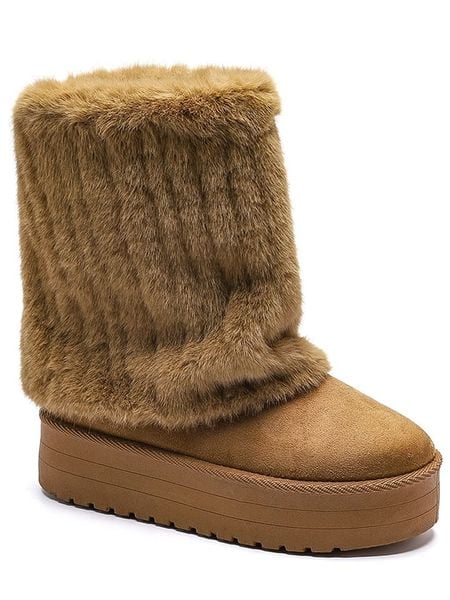 – zapięcie: bez- noski: zaokrąglone- detale: obszycie ze sztucznego futerka- dookoła gumowanie- forma obcasa: platforma- podeszwa: antypoślizgowa