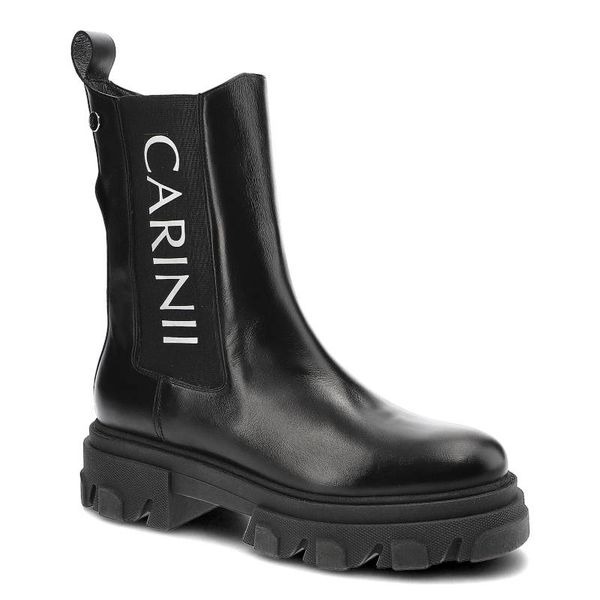 Botki damskie Carinii, gładka skórzana cholewka z kontrastowym nadrukiemsolidna podeszwa i praktyczny suwak, czarne, B8020_-E50-000-000-E33