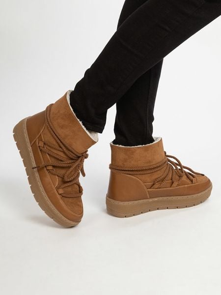 – zapięcie: sznurowanie- noski: zaokrąglone- noski i zapiętki: wzmocnione- detale: obszycie ze sztucznego futerka- dookoła gumowanie- podeszwa: antypoślizgowa