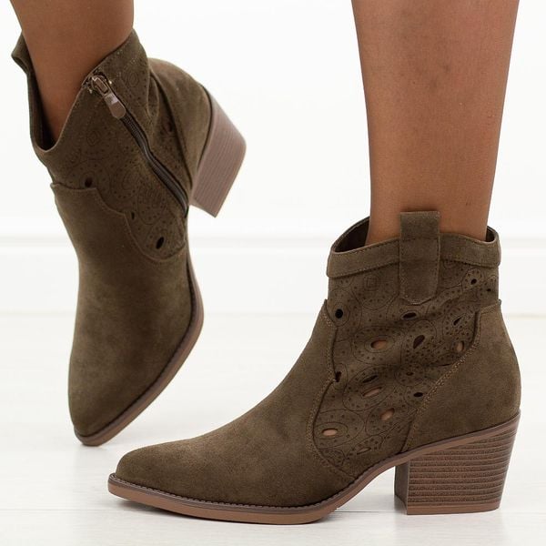Czekoladowe ażurowe botki damskie, kowbojki Evento 9452