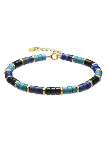 – materiał: srebro Sterling próby 925- powłoka: w kolorze złota- zapięcie: federing- rodzaj kamienia: turkus- kolor kamienia: granatowy, błękitny- regulacja długości: takWskazówka: Zdjęcie produktu w powiększeniu.