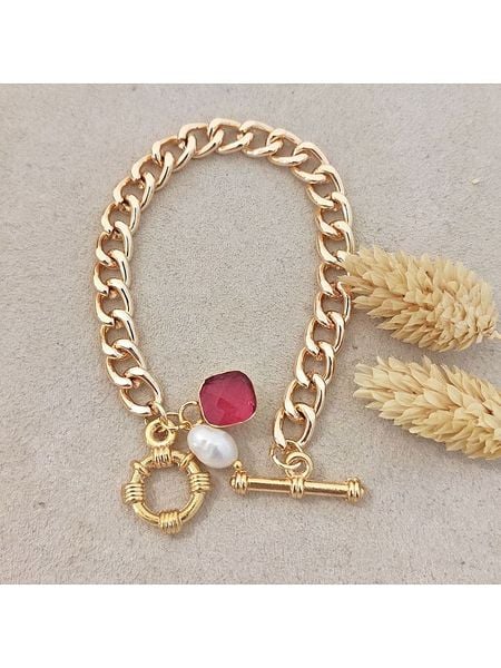 – materiał: mosiądz- powłoka: złoto- typ łańcuszka: ankier- zapięcie: kneblowe- rodzaj kamienia: kryształ- kolor kamienia: różowy- rodzaj perły: syntetyczna perła ozdobnaWskazówka: Zdjęcie produktu w powiększeniu.