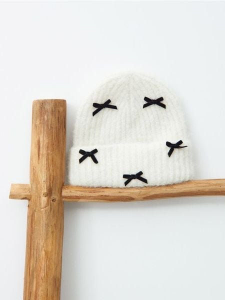 Sinsay – Czapka premium z alpaki z ozdobnymi kokardami – kremowy –