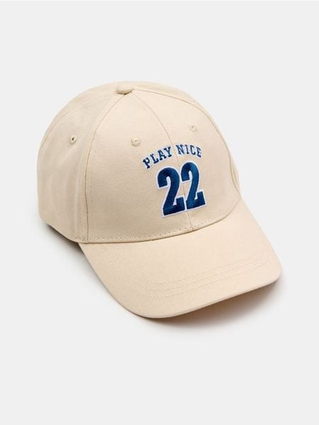 Bawełniana czapka z haftowanym nadrukiem – kremowy