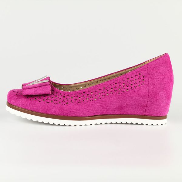Fuksjowe ażurowe czółenka damskie na koturnie M.Daszyński Sa199-6