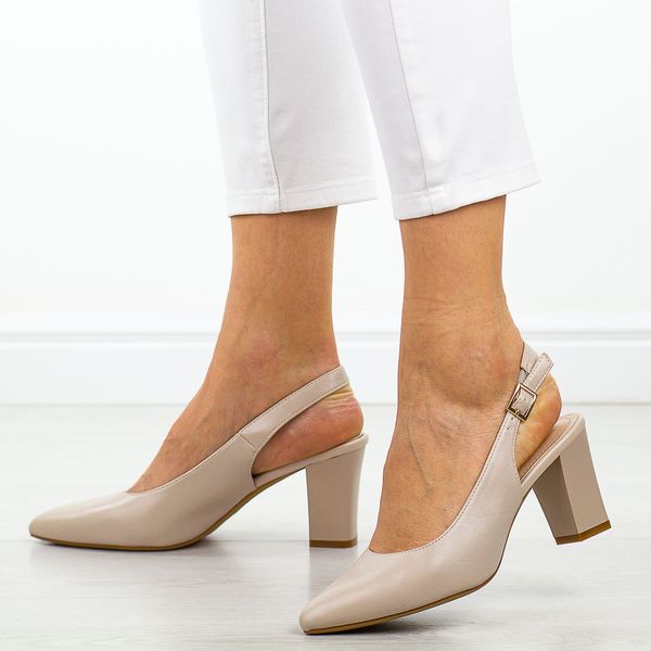 Cieliste czółenka damskie na słupku z odkrytą pietą Sergio Leone Sk162