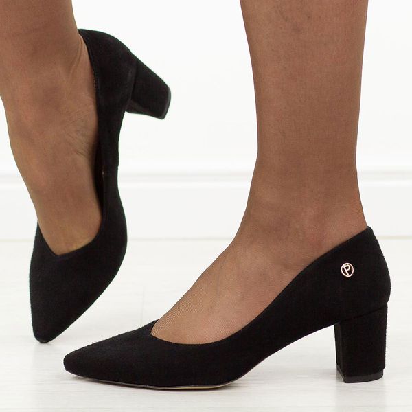 Czarne zamszowe skórzane Polskie czółenka damskie na słupku Prestige 2105 OBL