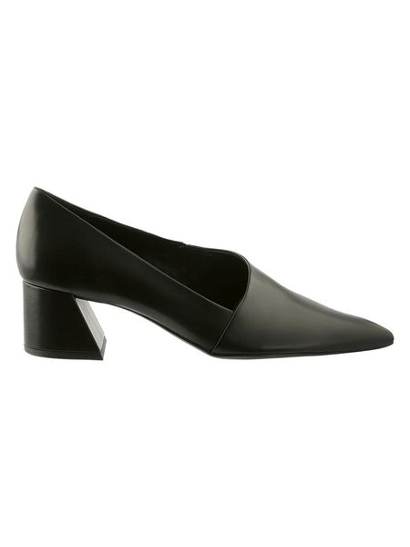 – ze skóry cielęcej- zapięcie: bez- noski: w szpic- forma obcasa: blokowy- podeszwa: antypoślizgowa