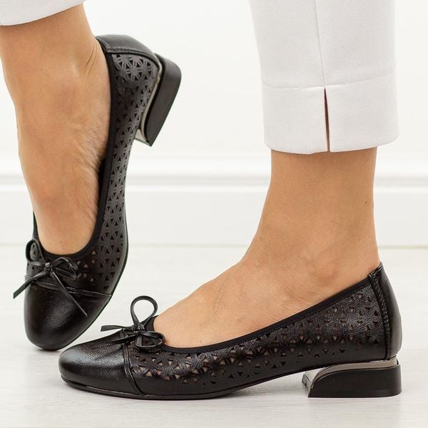Czarne ażurowe czółenka damskie na obcasie M.Daszyński Sa285-2