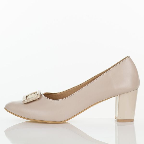 Beżowe skórzane Polskie czółenka damskie Deoni D665