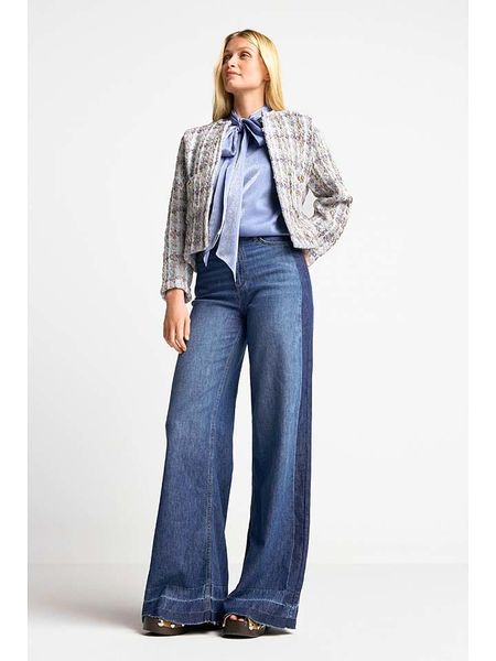 – wysokość pasa: high waist- fason: comfort fit- krój nogawek: szeroki- zapięcie: guzik i suwak- szlufki na pasek: tak- kieszenie: 5 klasycznych- przetarcia: tak