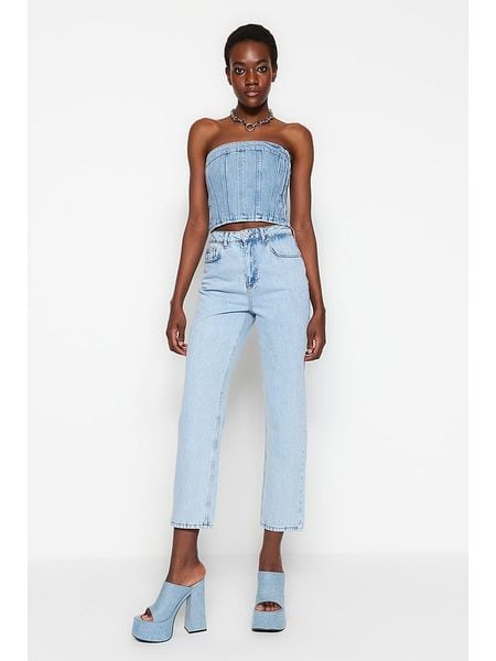 jeansy trendyol odzież damska limango.pl odzież damska trendyol jeansy ze sklepu limango.pl niebieskie jeansy jeansy z podwyższonym stanem