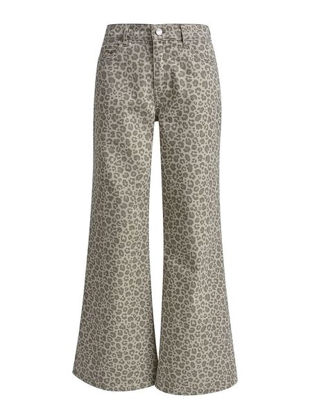 – wysokość pasa: high waist- fason: comfort fit- krój nogawek: szeroki- szlufki na pasek: tak- zapięcie: guzik i suwak- kieszenie: 5 klasycznych- naszywki: ze skóry syntetycznej- wzór: panterka